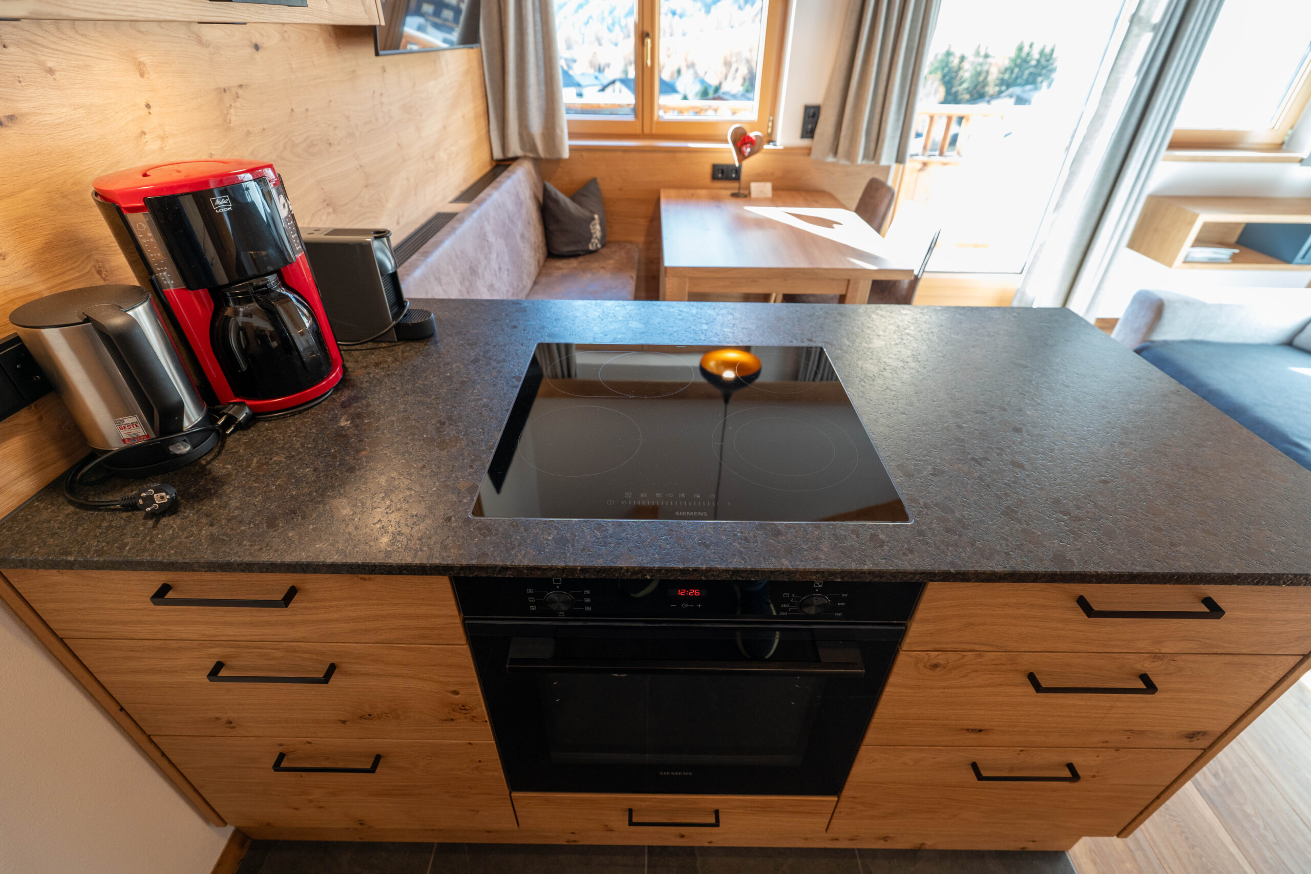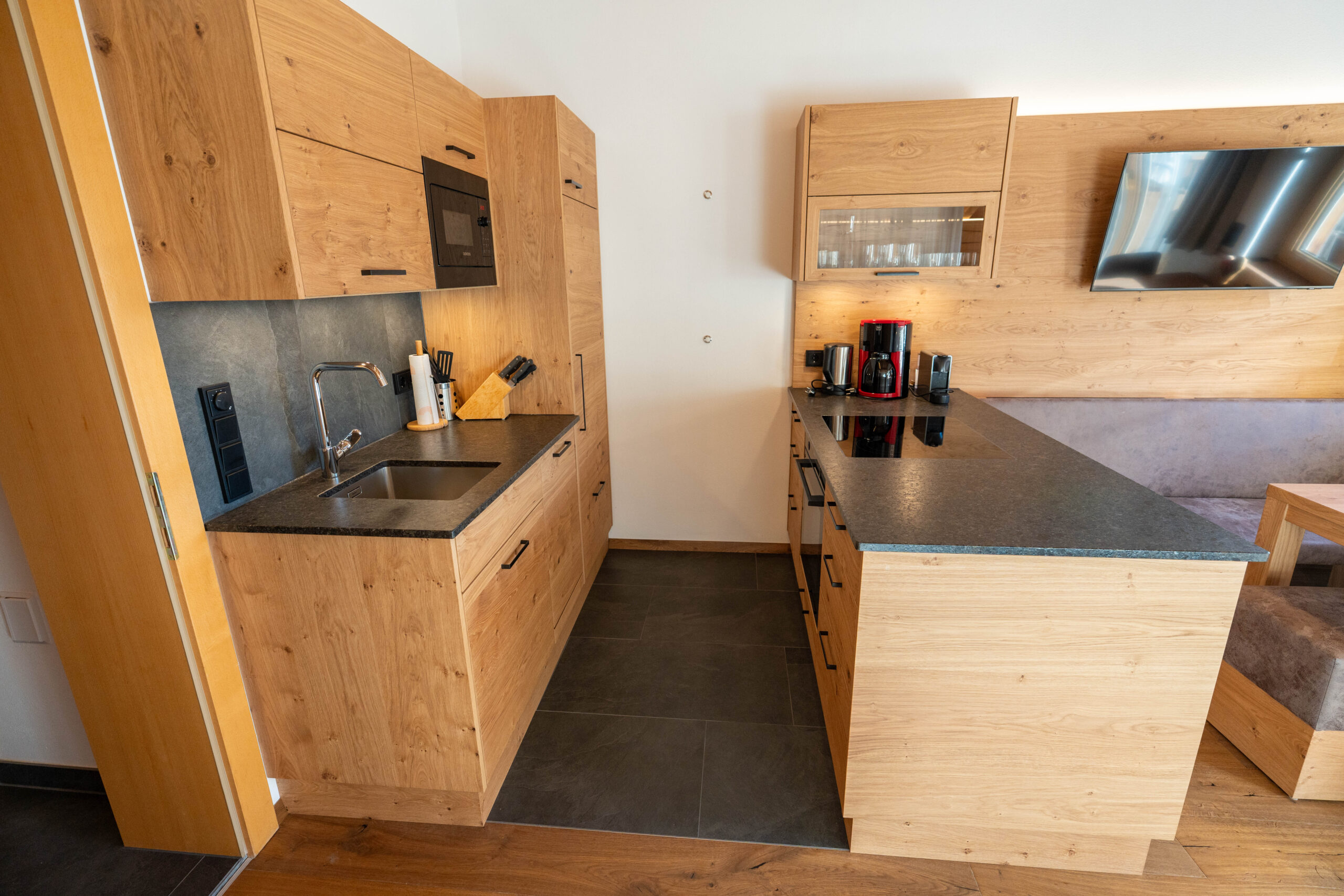 Die voll ausgestattete Küche (Geschirrspüler, Backrohr, Wasserkocher, Kaffeemaschine, Eierkocher u. v. m.) bietet alles, was Sie für eine entspannte Selbstversorgung benötigen. Das moderne Bad sowie der sonnige Südbalkon laden zum Entspannen ein.